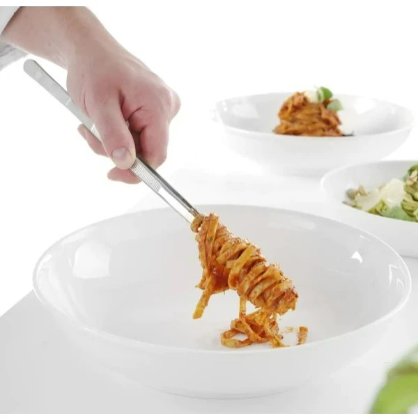 De Keukenpincet is een onmisbaar hulpmiddel voor het netjes serveren en schikken van gerechten tijdens jouw evenement. Met deze pincet kun je gemakkelijk kleine hapjes, garnituren, pasta, groenten of vlees draaien en presenteren zonder te knoeien — ideaal voor buffetten, diners, cateringstations en professionele keukenopstellingen.