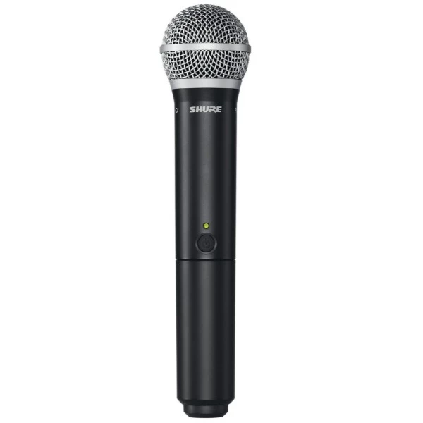 De Shure BLX2 is een betrouwbare handheld-microfoon. Hij is licht van gewicht, erg stevig gebouwd en werkt maximaal 14 uur op slechts twee AA-batterijen. Daarbij zorgt de PG58-microfooncapsule voor een adequate doorgifte van zowel zang als spraak. De cardioïde richtingskarakteristiek van de dynamische microfoonkop zorgt ervoor dat hij ongevoelig is voor rondzingen. U kunt de twee BLX2 handzenders gebruiken tot een afstand van maximaal 90 meter ten opzichte van de BLX88 ontvanger.