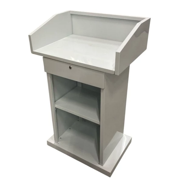 Breng stijl en professionaliteit naar het podium met het Spreekgestoelte Wit. Deze strakke en moderne lessenaar is ideaal voor toespraken, presentaties en ceremonies. De neutrale witte afwerking zorgt ervoor dat het spreekgestoelte in elke setting tot zijn recht komt.