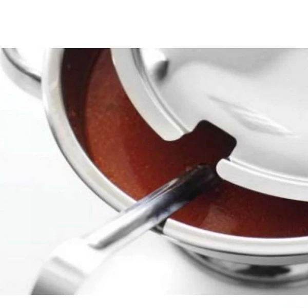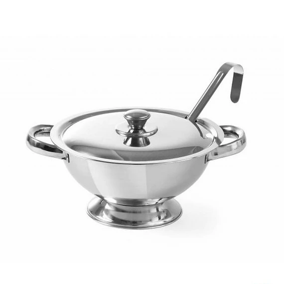 De Soepterrine met deksel en pollepel is de ideale keuze om soep of warme gerechten stijlvol te serveren tijdens jouw evenement. Dankzij het roestvrijstalen ontwerp en het handige deksel met uitsparing voor de pollepel blijft de inhoud langer warm en kan je eenvoudig en netjes opdienen. Perfect voor buffetten, diners, recepties en cateringopstellingen.