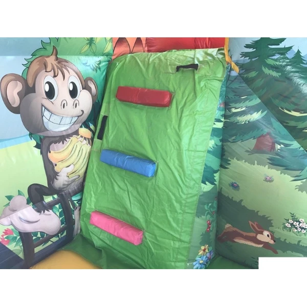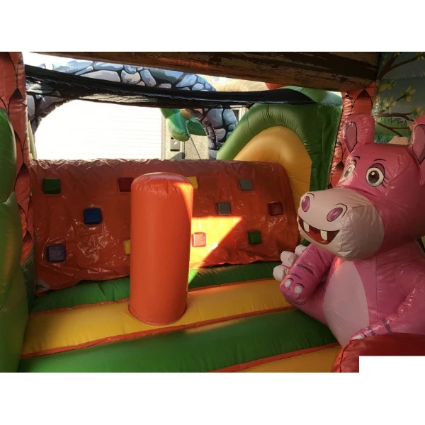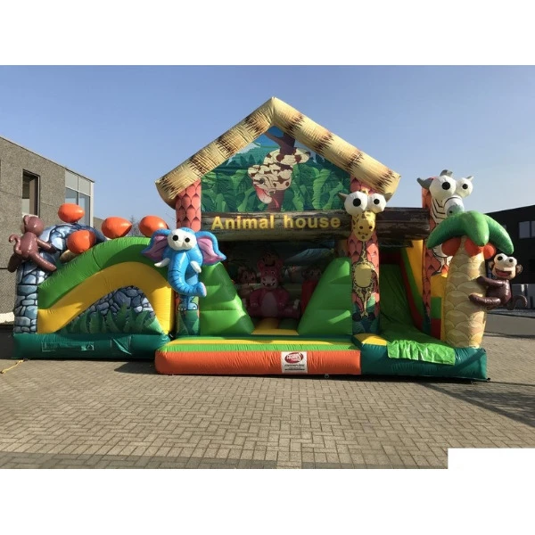 Welkom in het Animal House! Dit gigantische speelpaleis van 9x5 meter is een paradijs voor kleine dierenvrienden. Met kleurrijke jungle-illustraties en een speels dieren-thema biedt dit springkasteel eindeloos plezier voor kinderen die houden van springen, klimmen en ontdekken.