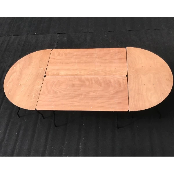 De ovale tafel van 274x152cm biedt voldoende ruimte voor 10 personen en is ideaal voor evenementen, feesten of vergaderingen. Dankzij het praktische, inklapbare ontwerp is deze tafel eenvoudig op te stellen en te transporteren. De tafel bestaat uit telkens 2 halfronde aanzetstukken in combinatie met diverse klaptafels waardoor de maximale transportafmeting per deel 152x76cm bedraagt.