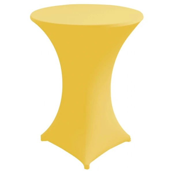 Breng kleur en energie in je evenement met de gele stretchhoes voor statafels. Perfect voor zomerse feesten, beurzen en andere levendige bijeenkomsten. Het stretchmateriaal zorgt voor een strakke pasvorm en biedt extra bescherming.